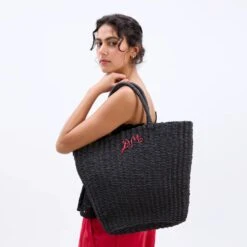 Damson Madder Straw Market Bag With Logo Black(Damson Madder Straw Market Bag With Logo Black)