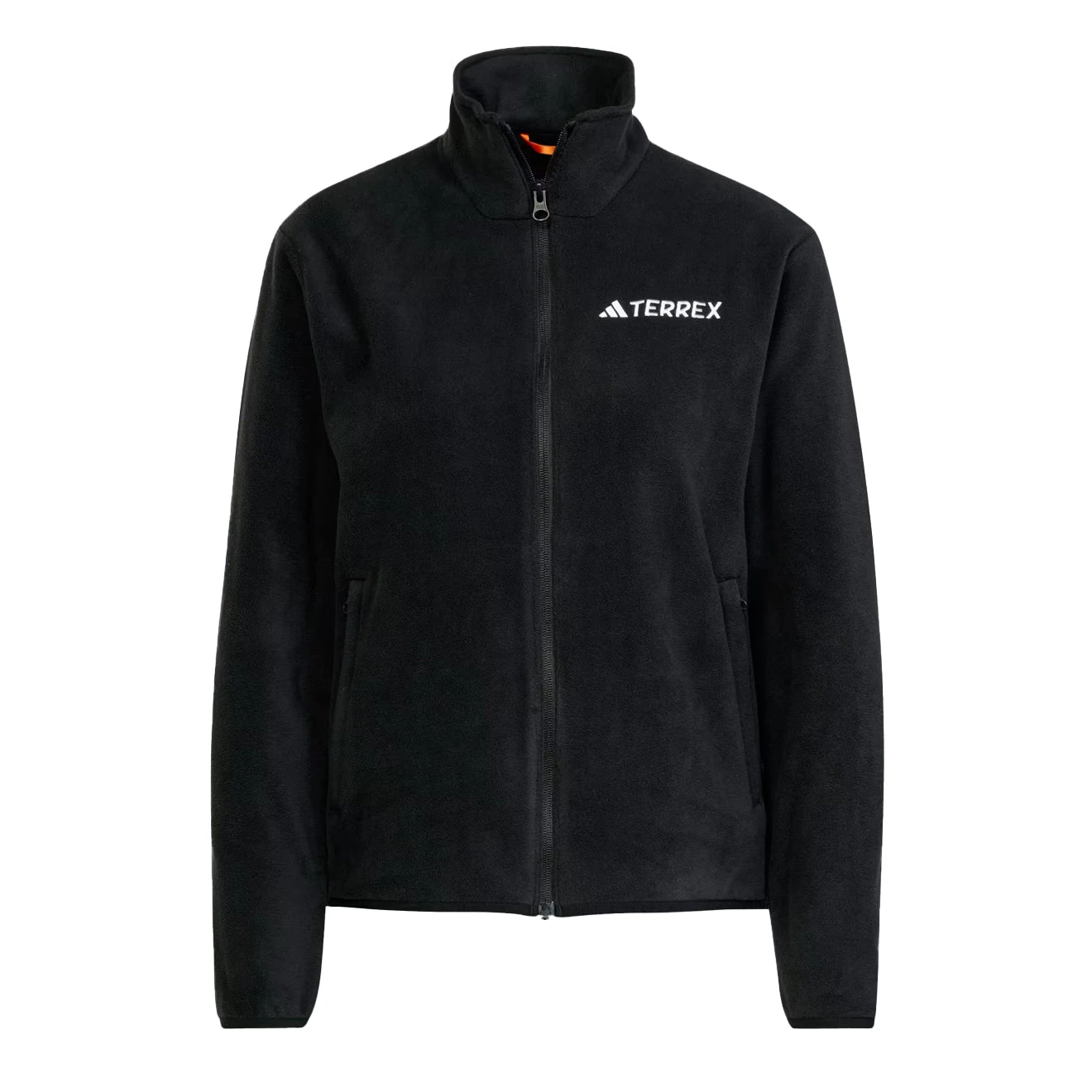 The Adidas Terrex Womens Multi Essentials Full-Zip Fleece Jacket in Black is the perfect layer for the trail or anytime you need extra warmth. The soft polar fleece feels great against your skin, and the jacket is made with 100% recycled materials, reducing waste and the impact on the environment.