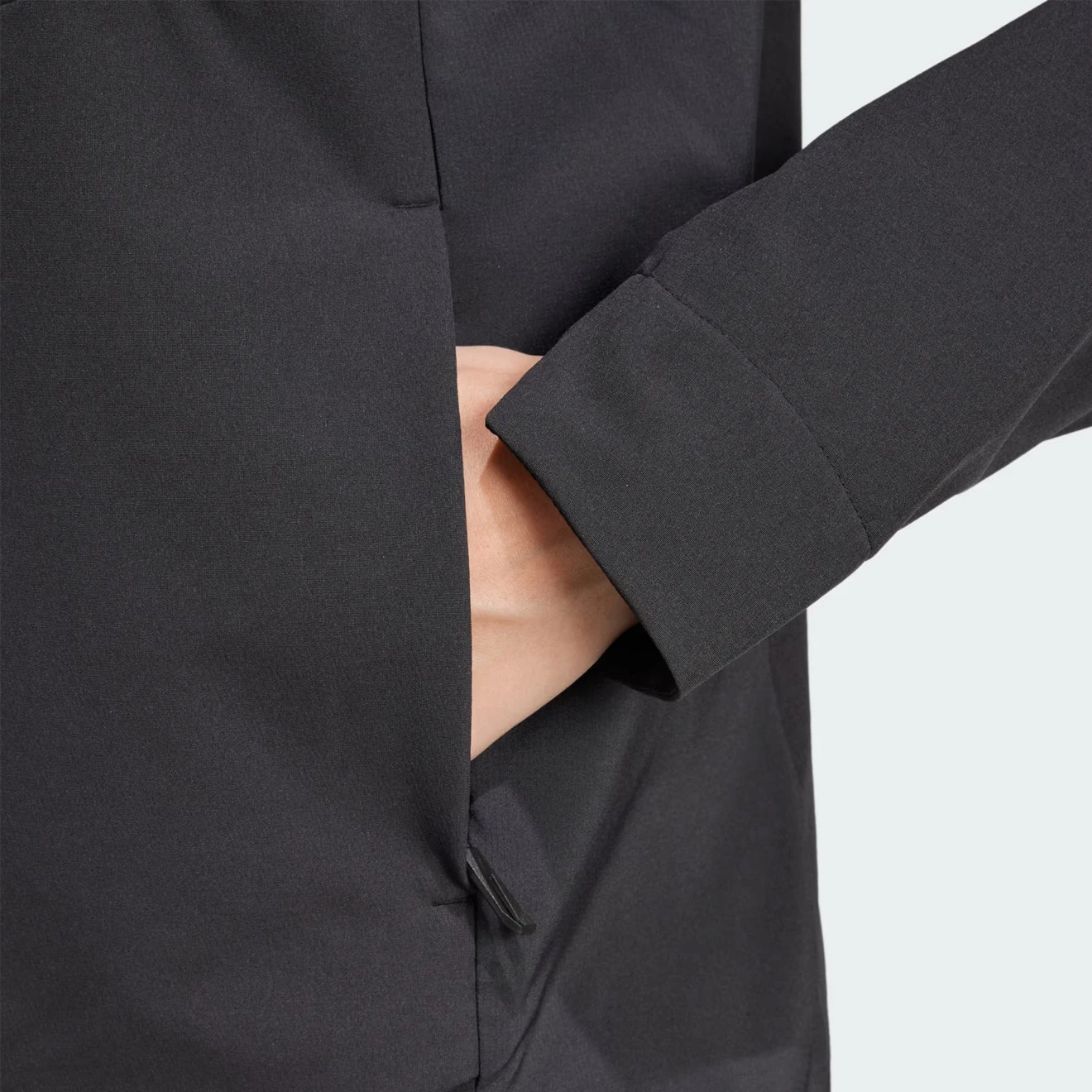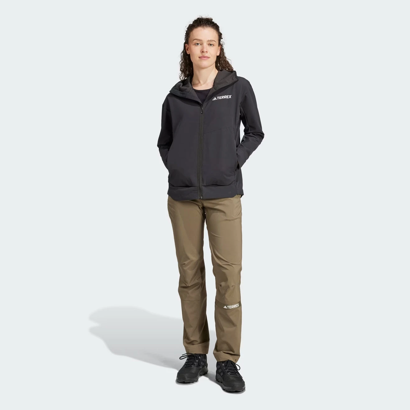 This versatile Adidas Terrex Women’s Multi Softshell Jacket in Black is perfect for any adventure. With a relaxed fit, drop shoulders, and stretchy material, you can move and bend comfortably while exploring. The hood and elastic cuffs also provide protection from the cold. Convenient zip pockets make it easy to store small essentials while on-the-go. This product is made from at least 70% recycled materials, reducing waste and the dependence on finite resources while minimising our environmental impact.