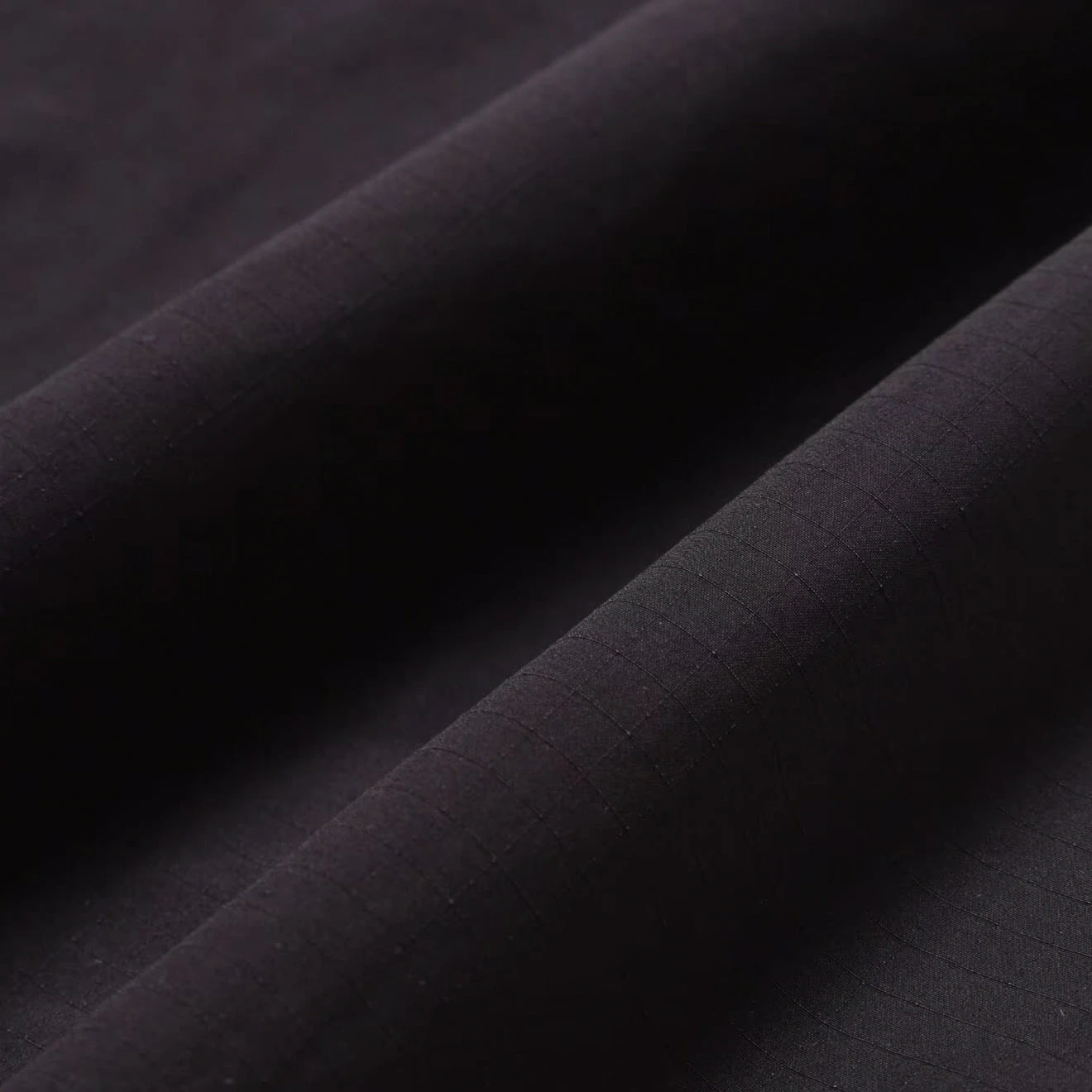 The And Wander Women’s C/N Rip Skirt in Black is made from a robust rip-stop fabric that combines organic cotton for the warp and durable CORDURA nylon for the weft. This blend ensures both comfort and durability. The skirt is crafted with thick No. 8 thread, which creates a unique puckered appearance along the seams, adding a distinctive texture and look.