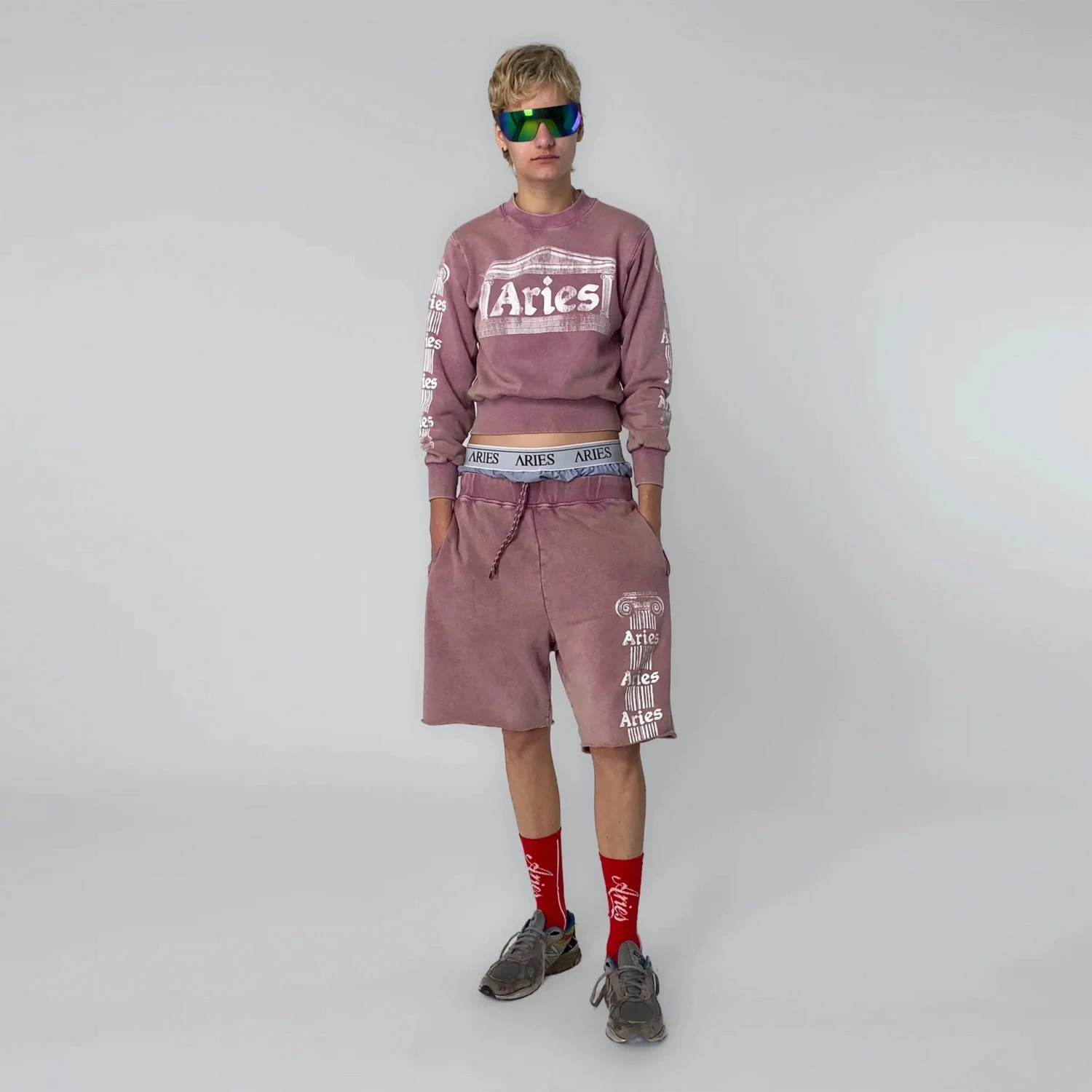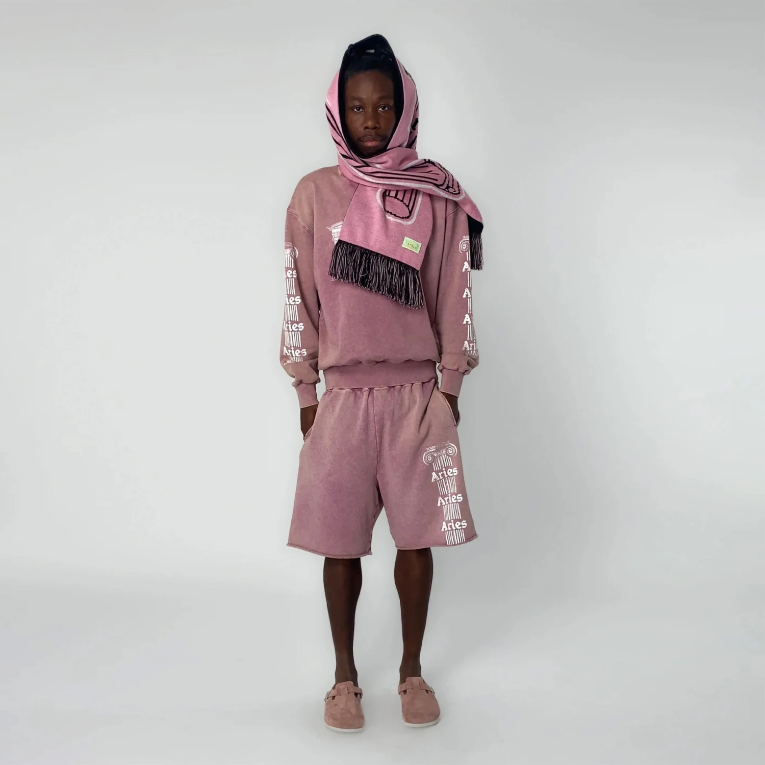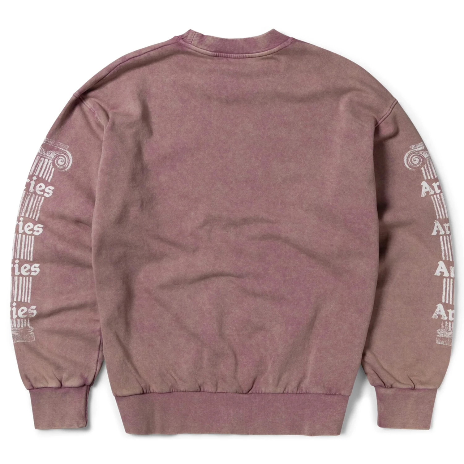 The Aries Aged Ancient Column Sweatshirt in Pink is crafted from brushed-back cotton jersey fleece for ultimate comfort. Featuring the Aries Ancient Temple graphic on the front and Ancient Column graphics along both sleeves, this sweatshirt offers a bold, iconic design. Finished with a heavy wash treatment, it delivers a vintage, worn-in look for a timeless style.