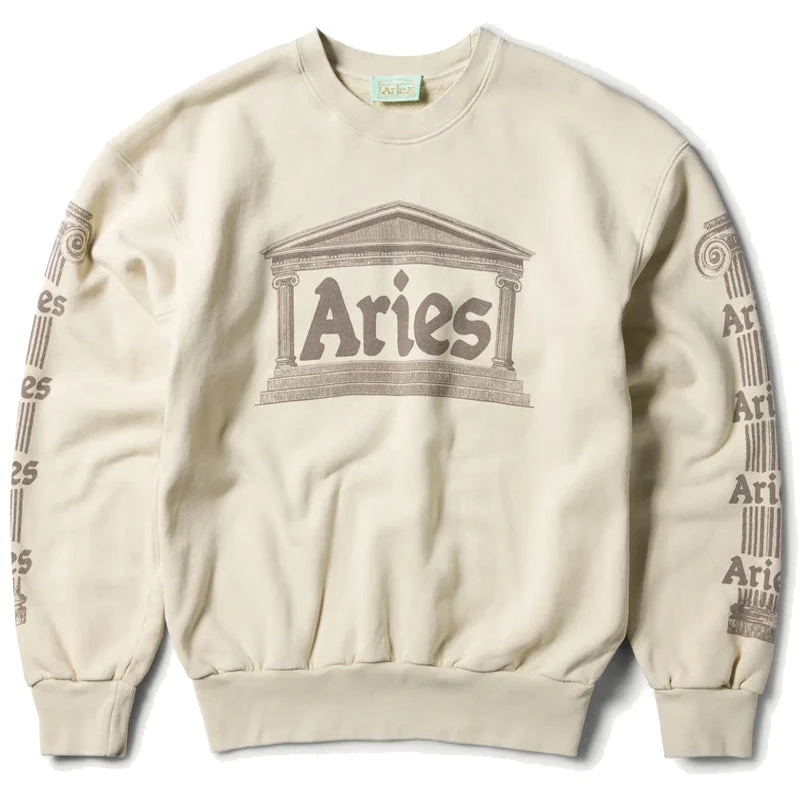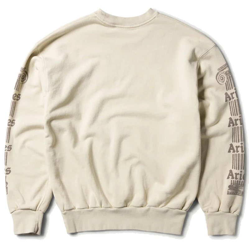 aries ancient column sweat in beige effortlessly merges ancient allure with modern ease. carefully crafted from cotton jersey, made in italy, this aries arise sweatshirt boasts intricate details for a unique blend of sophistication and casual cool. elevate your style game with this timeless piece, seamlessly fusing fahsion with ancient greek history and art.