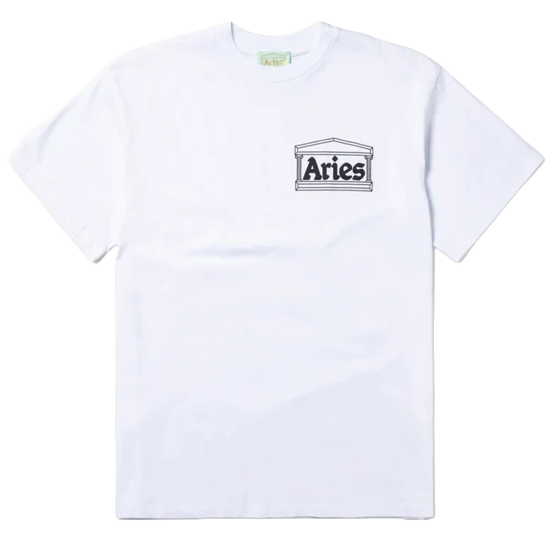 aries temple ss tee in white embodies relaxed sophistication with a rebellious edge. crafted from 100% cotton, this aries arise t shirt showcases the iconic aries temple print, seamlessly merging comfort with urban style. elevate your wardrobe with this statement piece, where aries effortlessly captures the essence of contemporary cool.