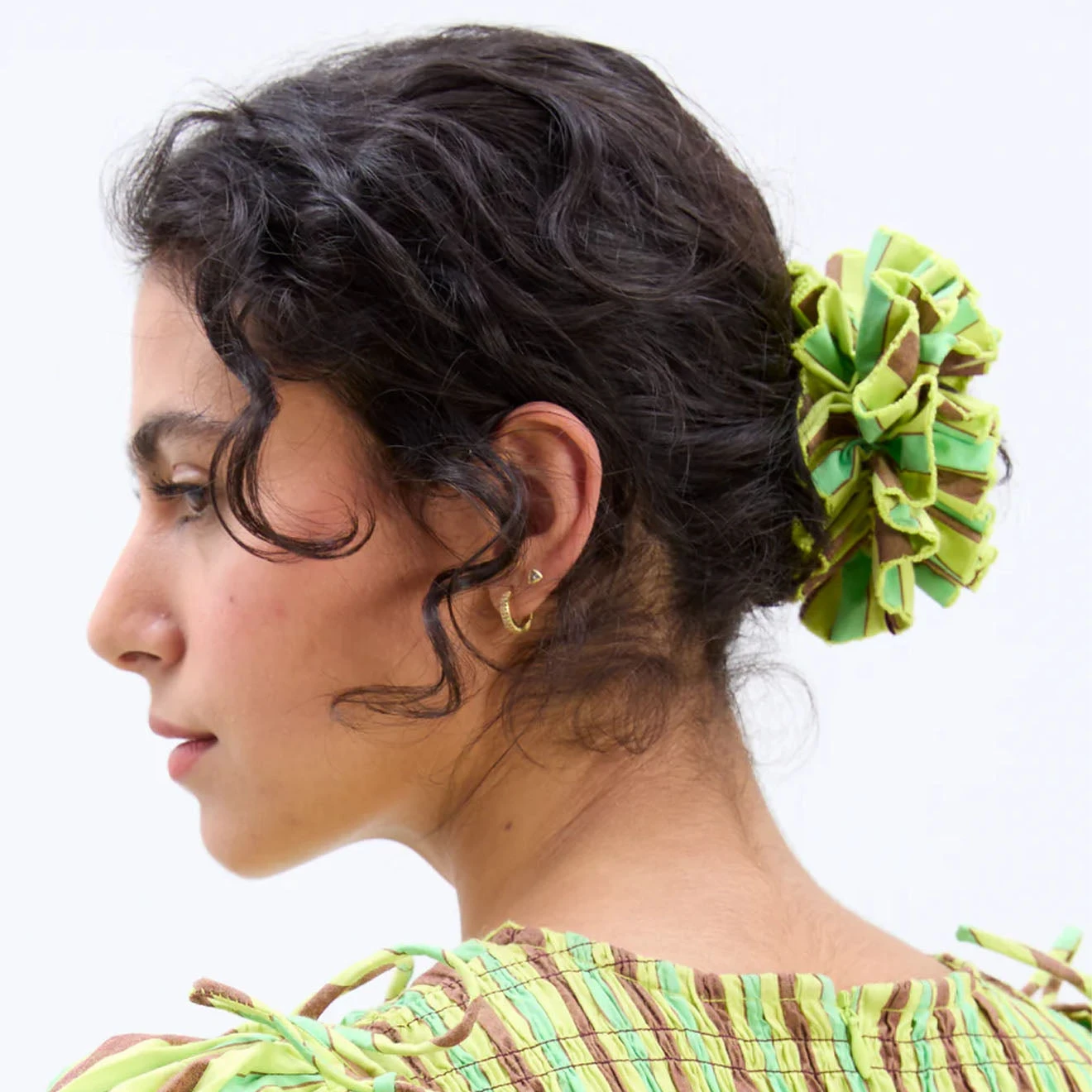 Made from 100% organic cotton, the Damson Madder Garter Scrunchie in Tropical Stripe is back and better than ever. This bestselling accessory adds a colourful touch to any outfit, making it a versatile addition to your wardrobe. Pair it with your favourite looks or coordinate it with matching outfits for a fun and cohesive summer style. Perfect for keeping your hair stylishly in place while embracing a vibrant aesthetic.