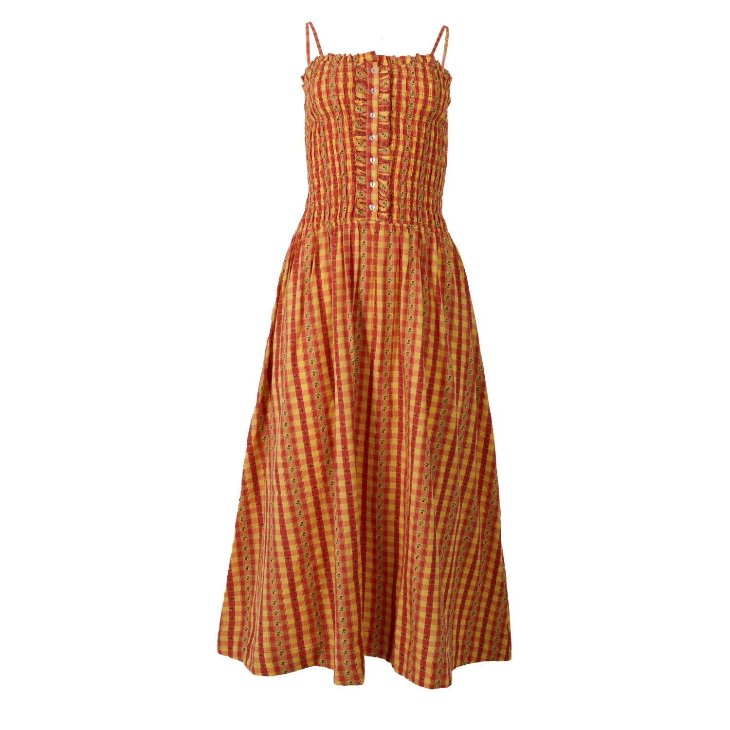 The Damson Madder Grace Strappy Midi Dress in Orange Margot Gingham is made from breathable cotton for a comfortable and a flattering fit. Featuring a vibrant gingham print, it’s perfect for dressing up or down for any occasion. A versatile summer essential with timeless style.