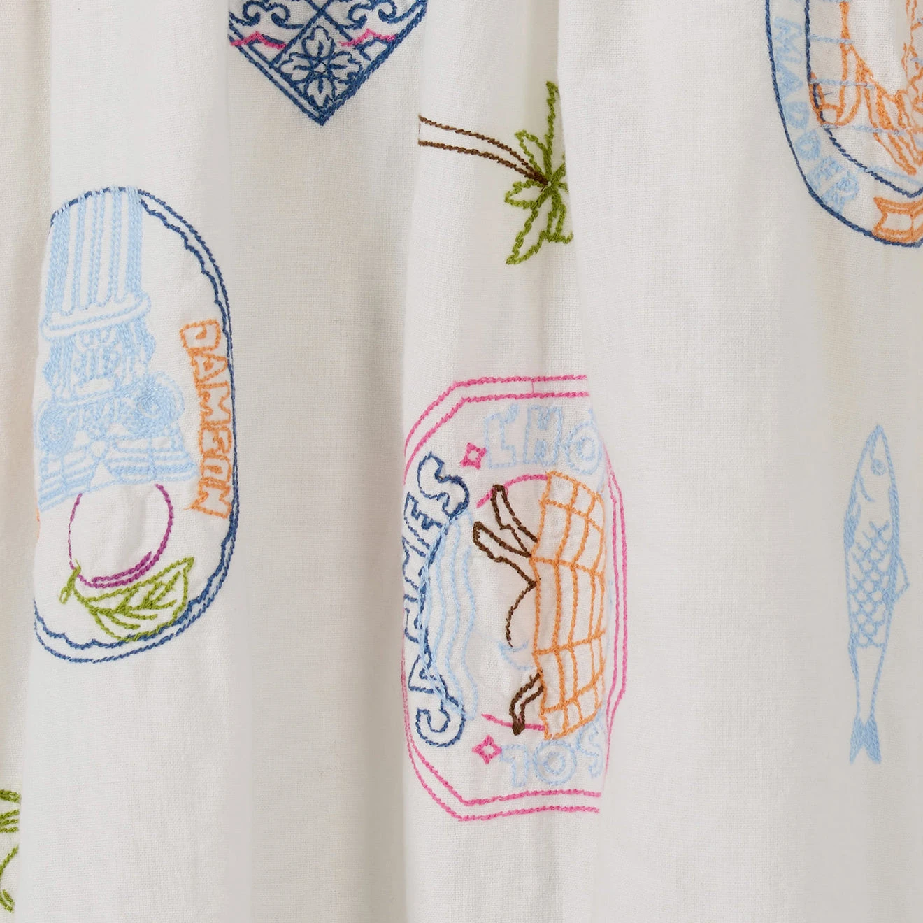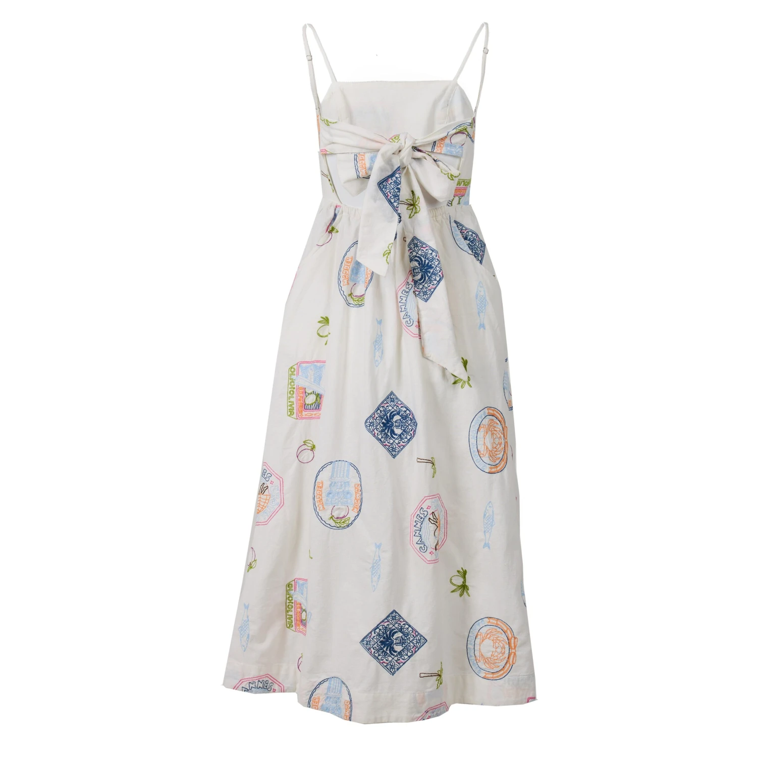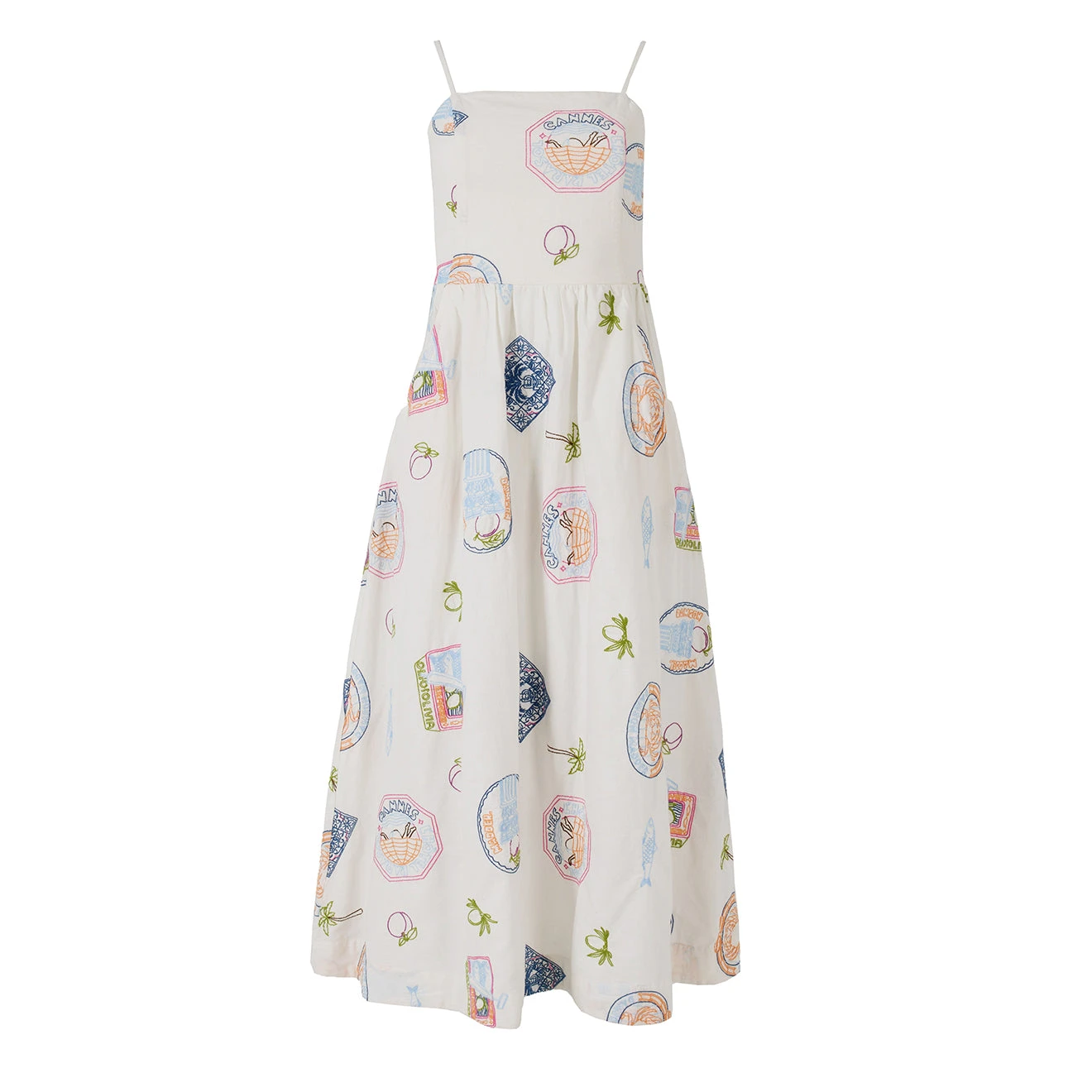 The Damson Madder Peaches Midi Apron Dress features charming holiday embroidery, perfect for embracing summer style. Made for sunny days, this dress combines comfort and chic with its embroidered details, making it a stylish and effortless addition to your wardrobe.