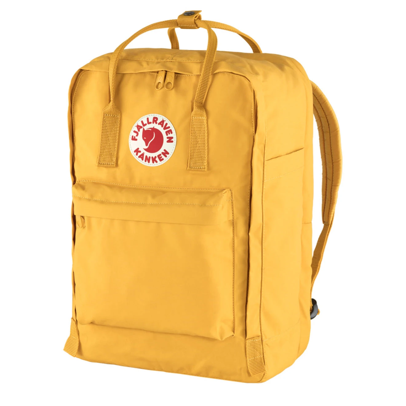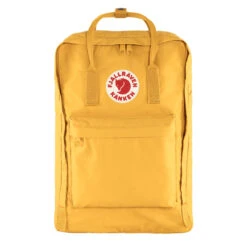 The Fjällräven Kånken Laptop 17 Backpack in Ochre is the largest in the Kånken laptop series, designed for commuting, studying, and travel. Made from durable Vinylon F fabric, it features a padded compartment that securely fits laptops up to 17 inches, a spacious main compartment with a zip closure, and a front zip pocket for quick-access essentials. Adjustable shoulder straps and a sturdy top handle ensure comfortable carrying, while the iconic reflective Arctic Fox logo adds a signature touch. Rugged, functional, and stylish, this backpack is built to handle everyday life with ease.