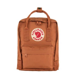 The Fjällräven Kånken Mini Backpack in Terracotta Brown is perfect for children or adults seeking a smaller, adjustable bag. Made from durable and water-resistant Vinylon-F fabric, this backpack is designed to resist dirt and liquids while lasting for years. It features a spacious zippered main compartment with a removable seat pad, a front zippered pocket, two flat side pockets, and the iconic Fjällräven reflector logo on the front. Ideal for everyday use, school, or outdoor adventures.
