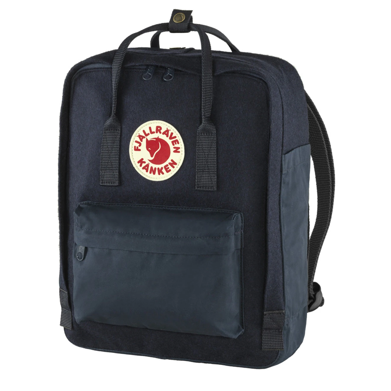 The Fjällräven Kånken Re-Wool in Night Sky is a sustainable update to the classic Kånken backpack, crafted from high-quality recycled Melton wool. Designed for everyday use, it features durable G-1000 HeavyDuty Eco S fabric on the base, back panel, pockets, and lining for added strength and longevity. The backpack includes a seat pad, comfortable textile shoulder straps, and sturdy top handles. Combining timeless design with eco-conscious materials, it is perfect for school, work, or daily adventures.