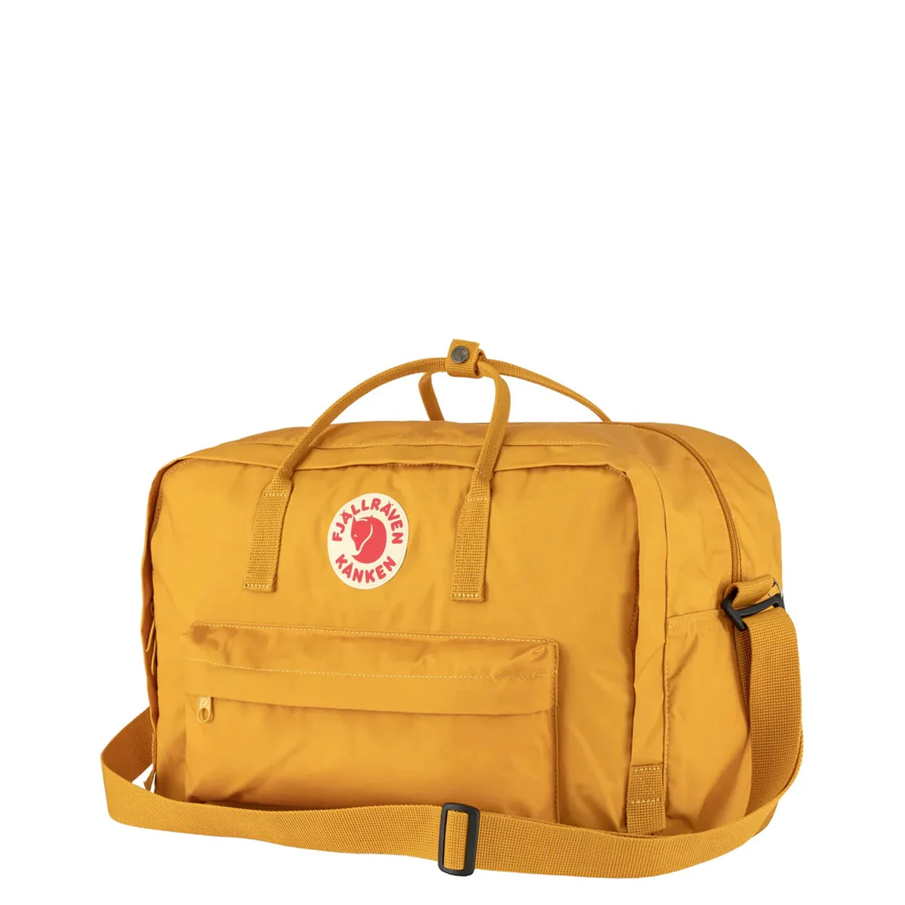 The Fjรคllrรคven Kรฅnken Weekender Bag is inspired by the classic duffel bag and offers versatile carrying options: as a hold-all, crossbody bag, or backpack using padded shoulder straps. It features a spacious main compartment and an expandable front pocket, making it perfect for weekend getaways.