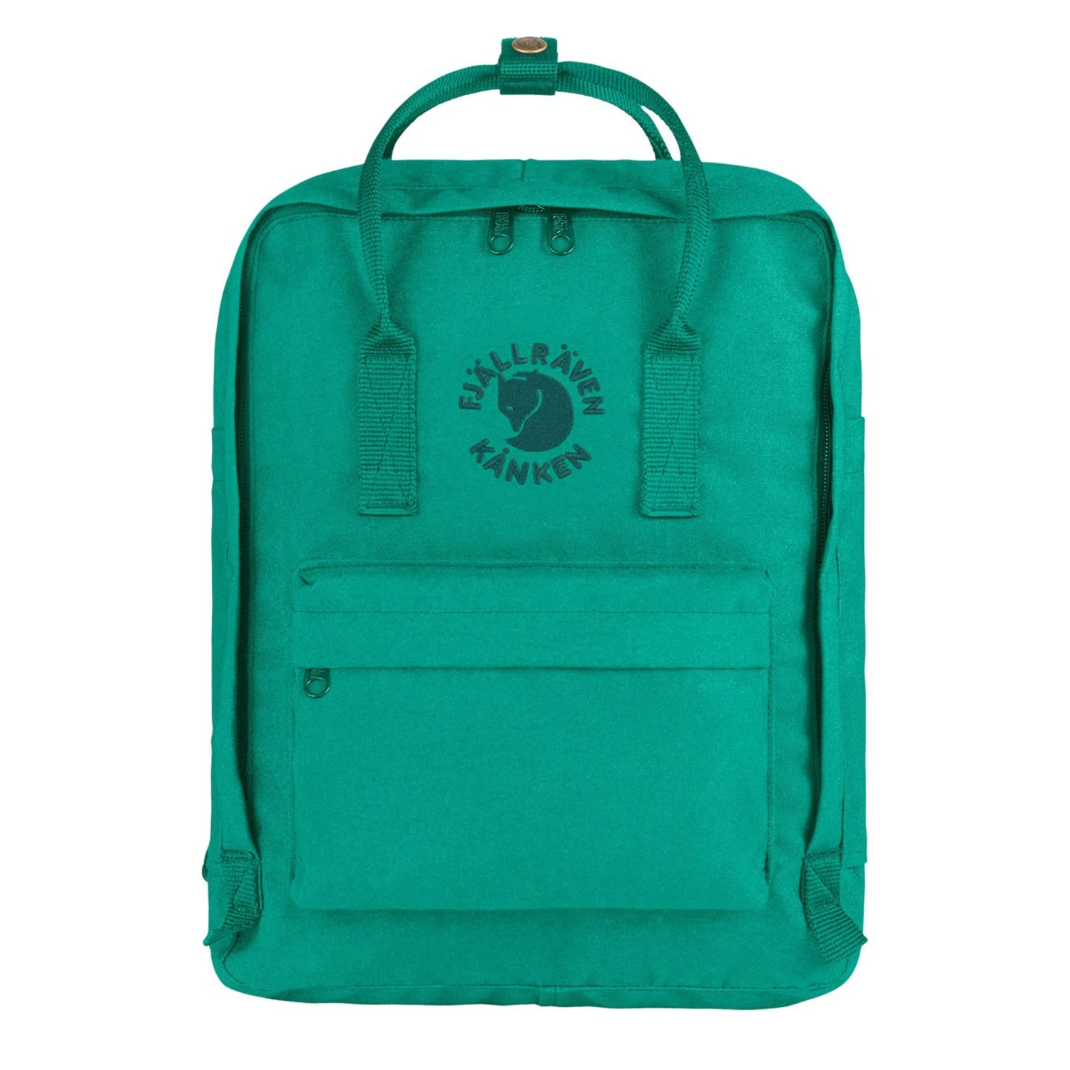 The Fjallraven Re-Kanken Classic Backpack in Emerald is an eco-conscious take on the iconic Kanken design, made entirely from recycled plastic bottles and spin-dyed to significantly reduce water, energy and chemical use. It features a spacious main compartment, front zippered pocket and two open side pockets ideal for daily essentials. A removable seat pad is tucked into the back sleeve, ready for on-the-go comfort. Designed for everyday use, the Re-Kanken offers sustainability without compromising on style or functionality.