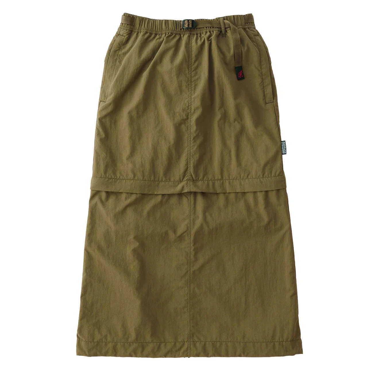 an ultra versatile piece, the gramicci convertible micro ripstop skirt can be worn into two ways: a mid length skirt, or a mini skirt. crafted with a nylon thread that feels like cotton, and possesses a durable ripstop – this skirt will quickly become a wardrobe staple. super lightweight, well ventilated and comfortable.