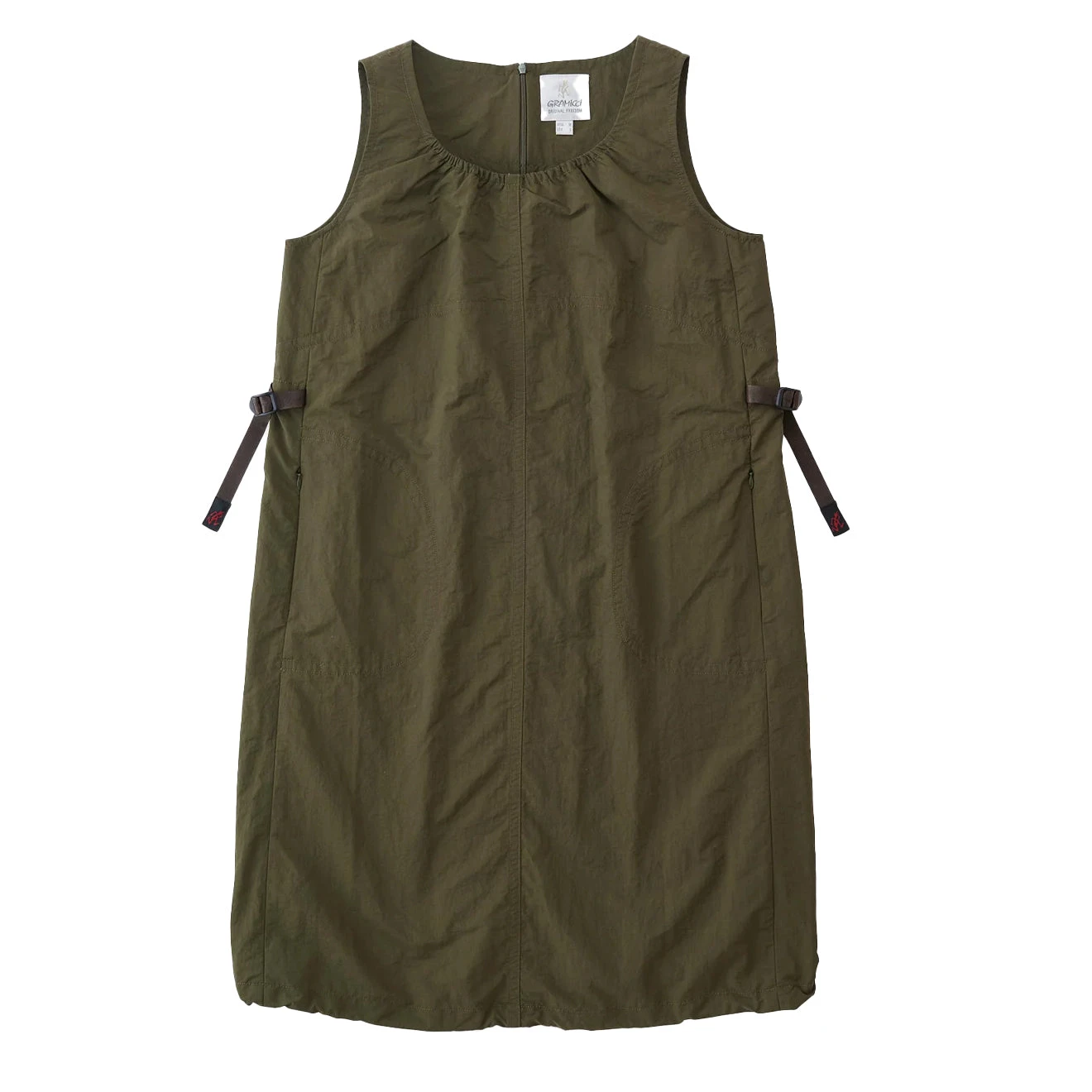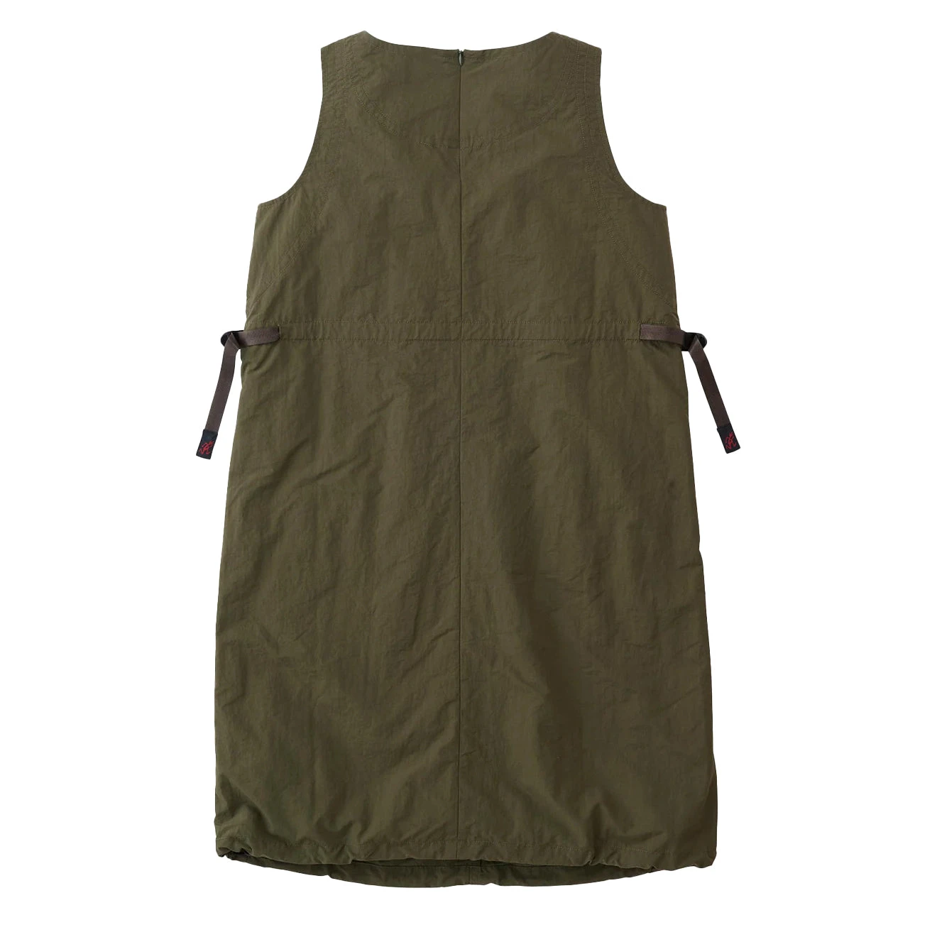The Gramicci Nylon Dress Olive is a functional mid-length dress crafted from durable recycled nylon. This lightweight, quick-drying fabric features a water-resistant coating, making it perfect for outdoor summer activities. Designed for a customizable fit, the dress includes a drawcord hem and an adjustable waist for added comfort and style. Ideal for active days, the Gramicci Nylon Dress blends practicality with a sleek, effortless design.