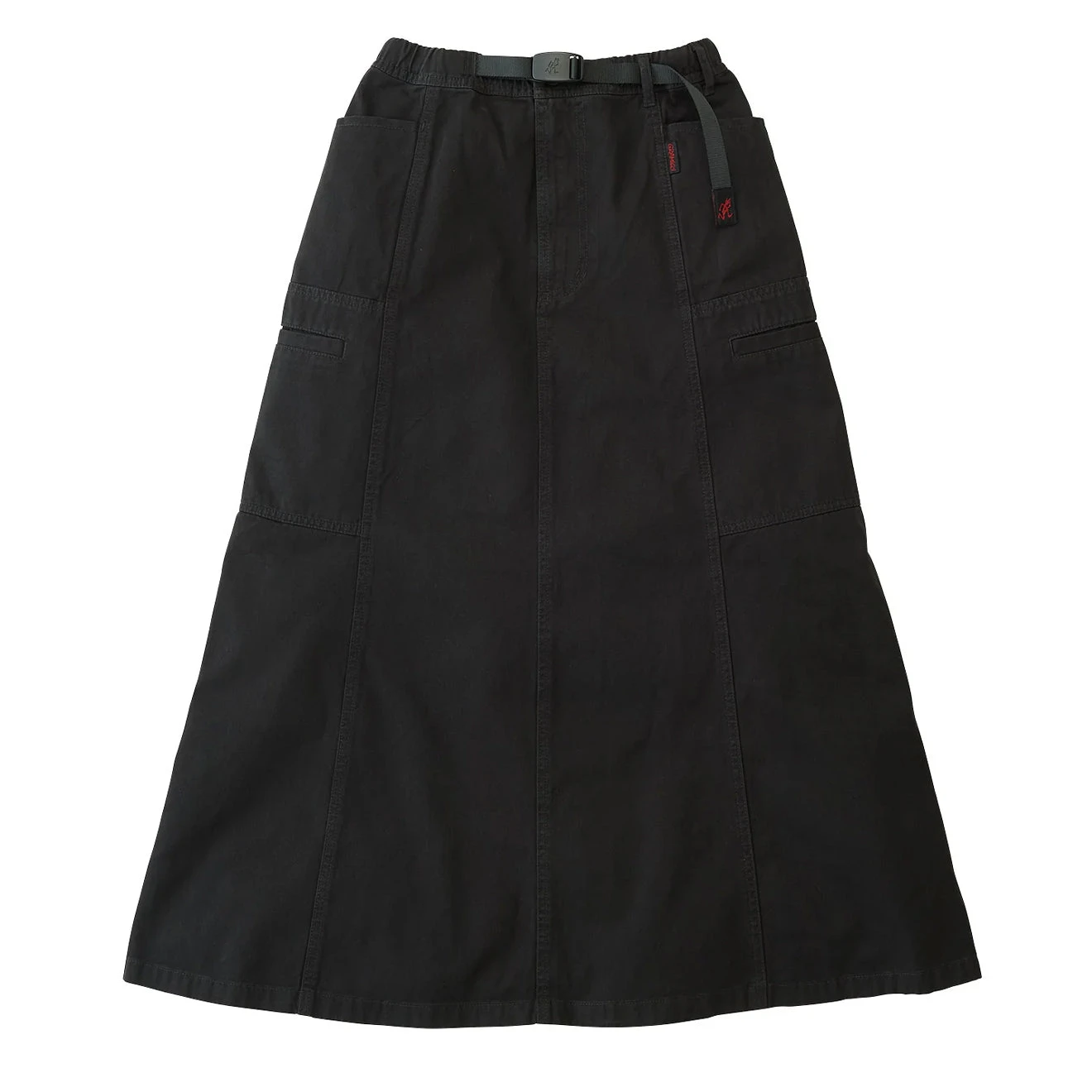 The Voyager Skirt is a full-length maxi skirt made from our trademark organic cotton twill. Like the Voyager Pants, it sits right in the middle of the Venn diagram of form and functionâwith large wrap-around pockets offering plenty of space for your everyday bits and pieces, and that adjustable webbed belt referencing our climbing roots. Pleated, with a gentle flare out to the hem, itâs a unique design thatâs guaranteed to get a lot of wear.