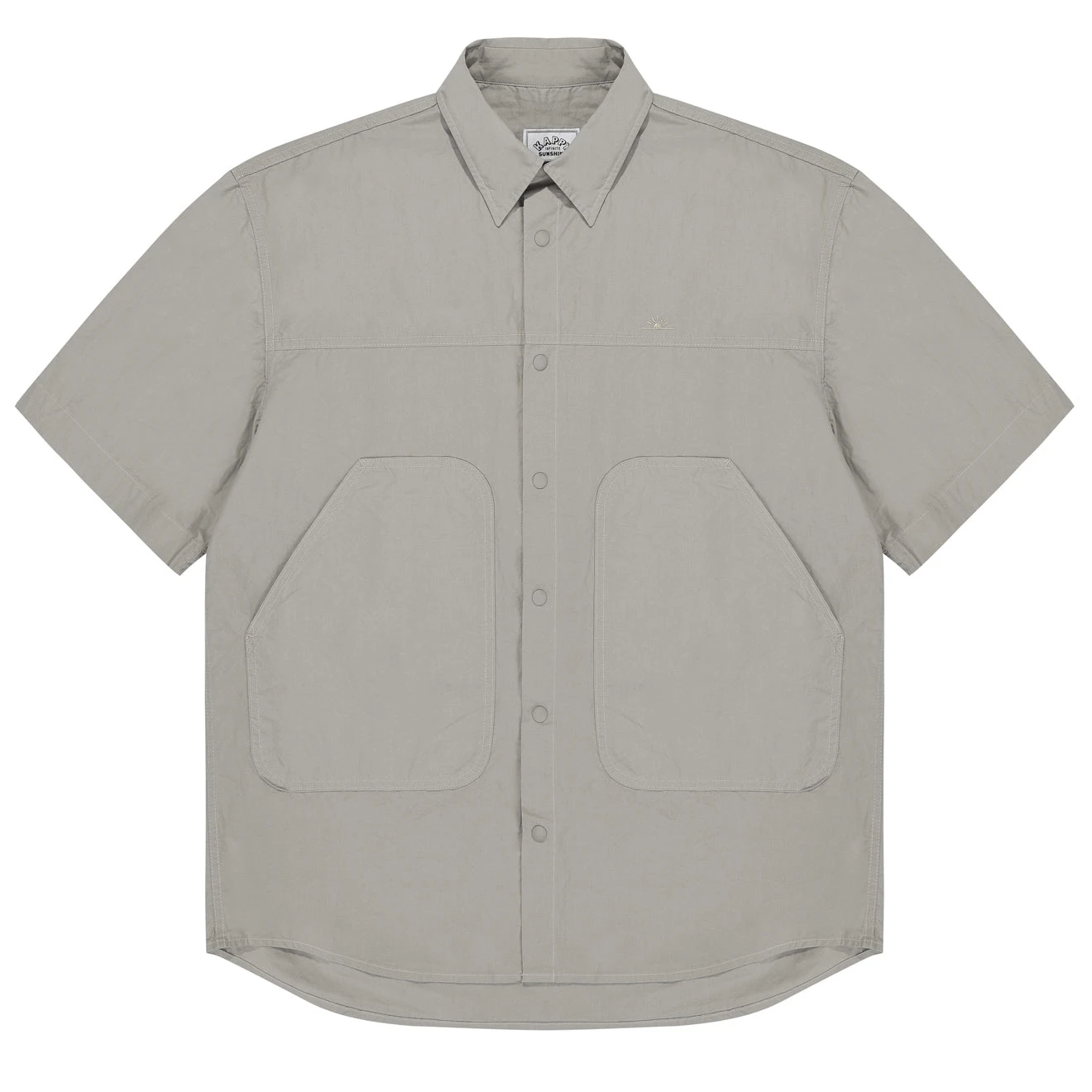 The Kappy Cotton Snap Half Shirt in Light Gray is a versatile snap front shirt crafted from 100 percent high density cotton for durability and comfort. Stonewashed to minimize shrinkage, it features a chest pocket, snap front closure and a relaxed fit that works as a shirt or lightweight jacket. Double back pleats enhance mobility while its timeless design pairs effortlessly with any outfit, perfect for casual everyday wear.