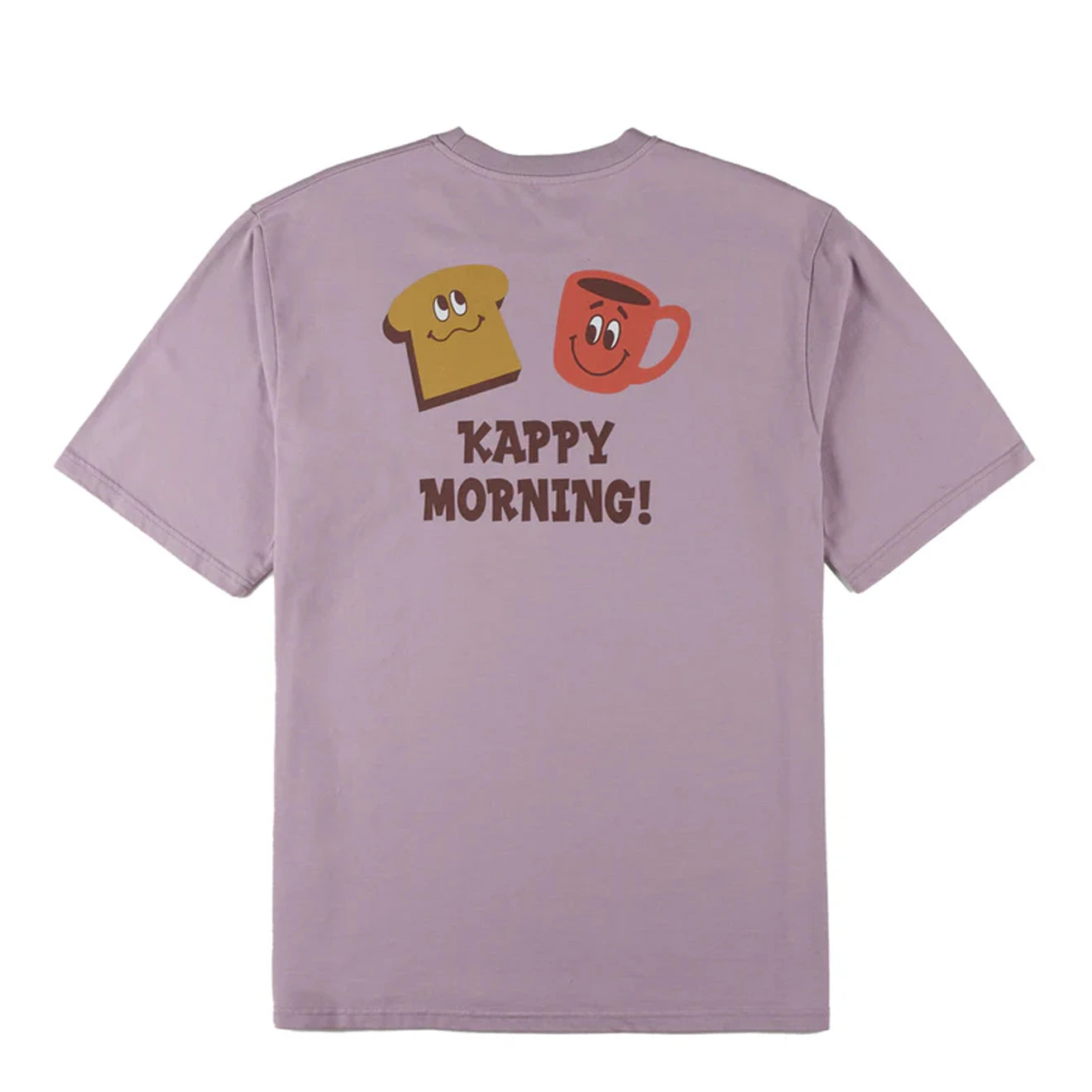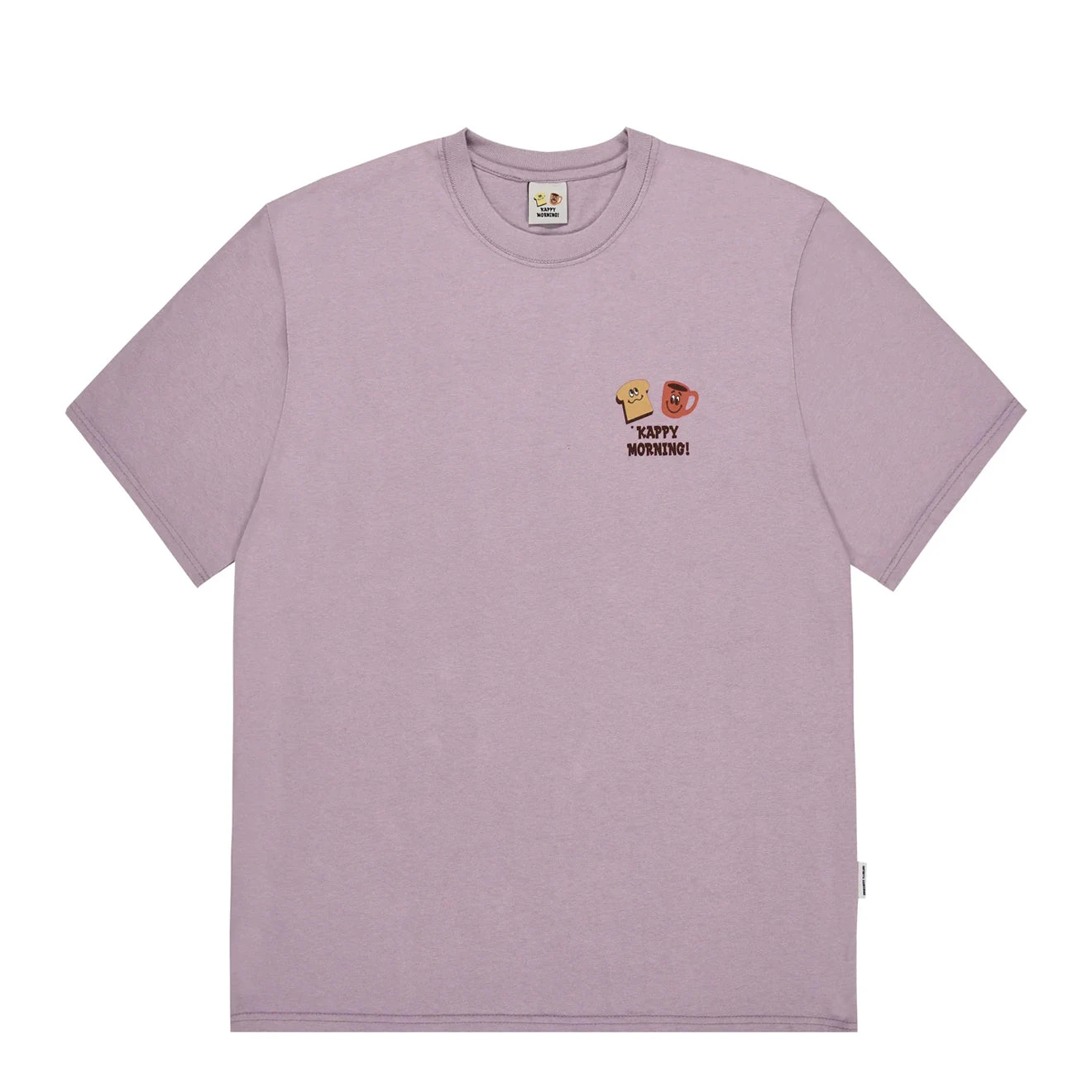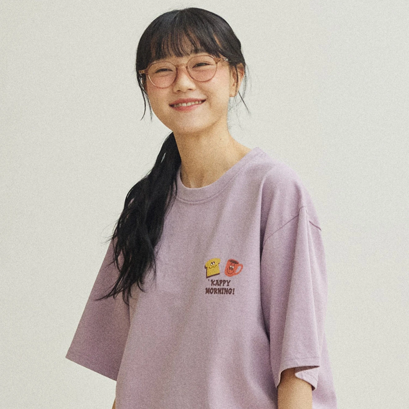 The Kappy Morning Half T-Shirt Toru Fukuda Edition Lilac is a limited edition collaboration with Japanese illustrator Toru Fukuda. Made in Korea from 100% cotton, this boxy fit tee features a relaxed oversized silhouette. It blends exclusive artwork with everyday comfort, making it a standout piece for casual creative style.