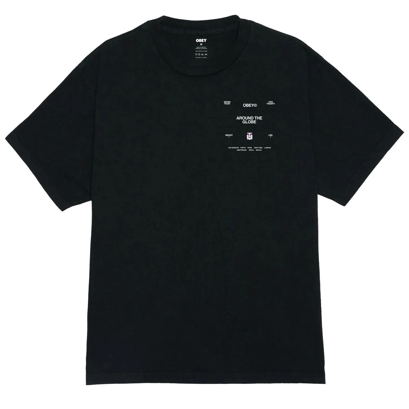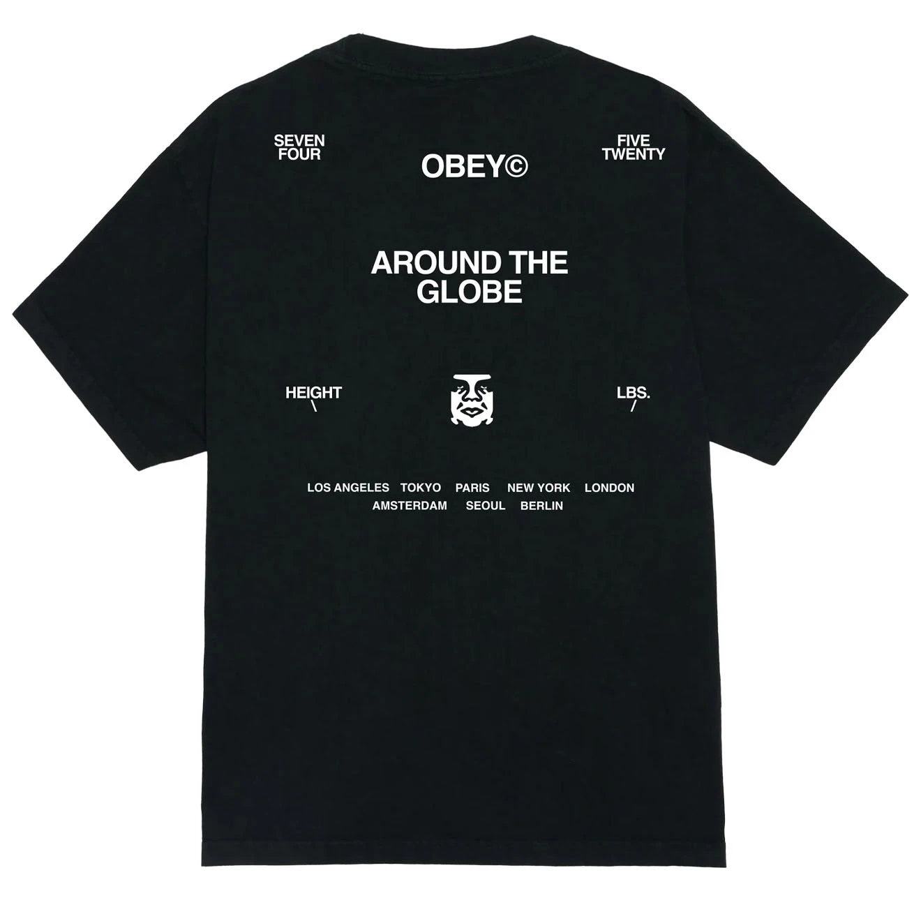 The Obey Around The Globe T-Shirt in Pigment True Vintage Black is a classic short-sleeve tee featuring bold front and back graphics. Made from 100% cotton with a 6oz weight, it offers a regular fit and a soft, broken-in feel thanks to the pigment-dyed finish. A timeless staple that blends everyday comfort with Obey’s distinctive streetwear style.