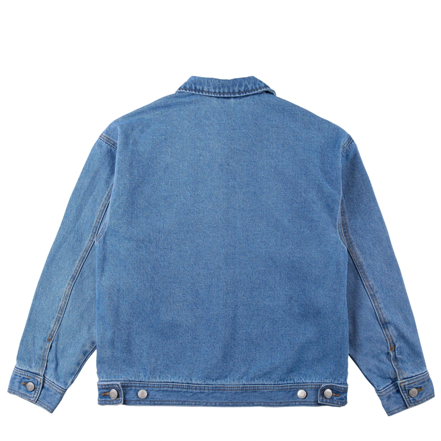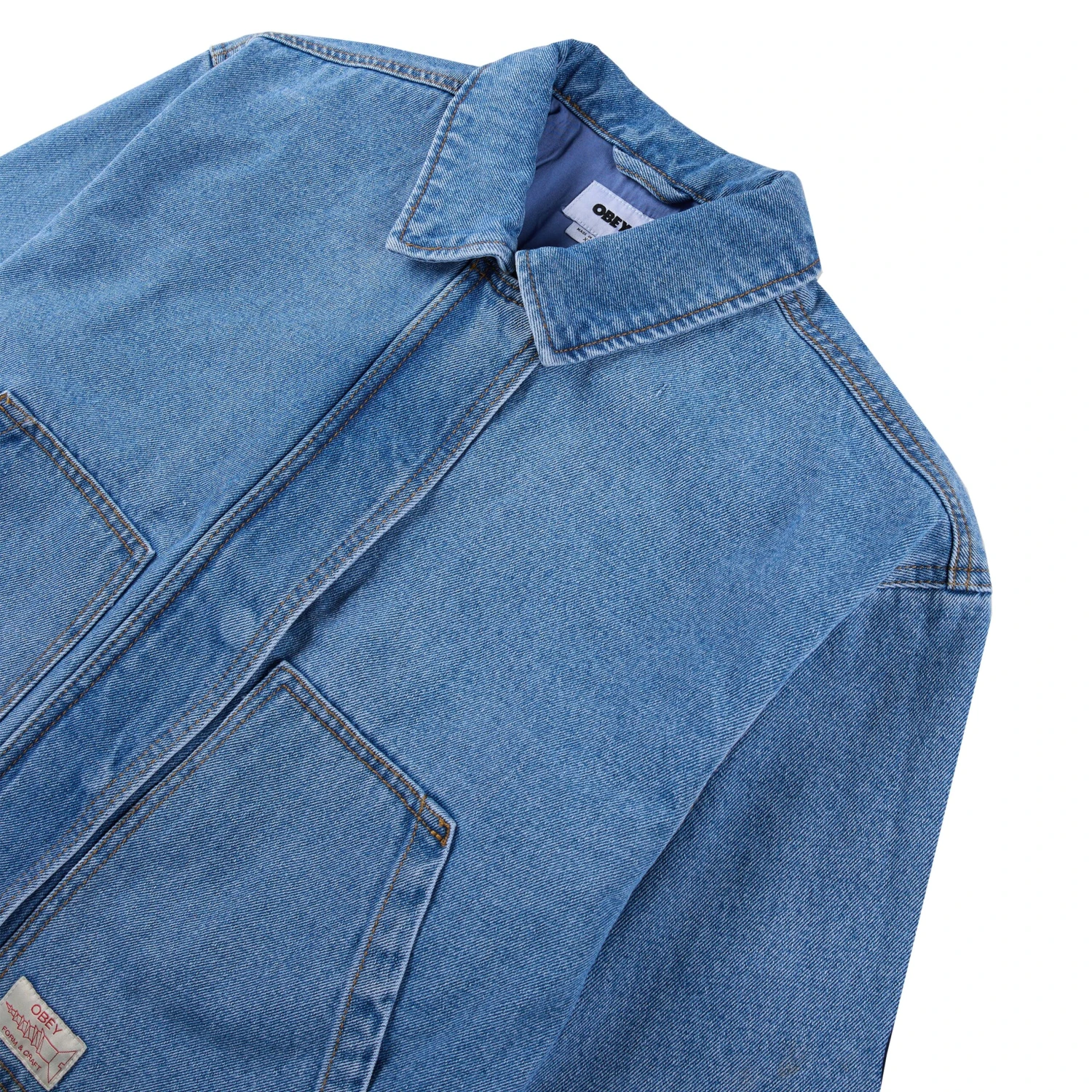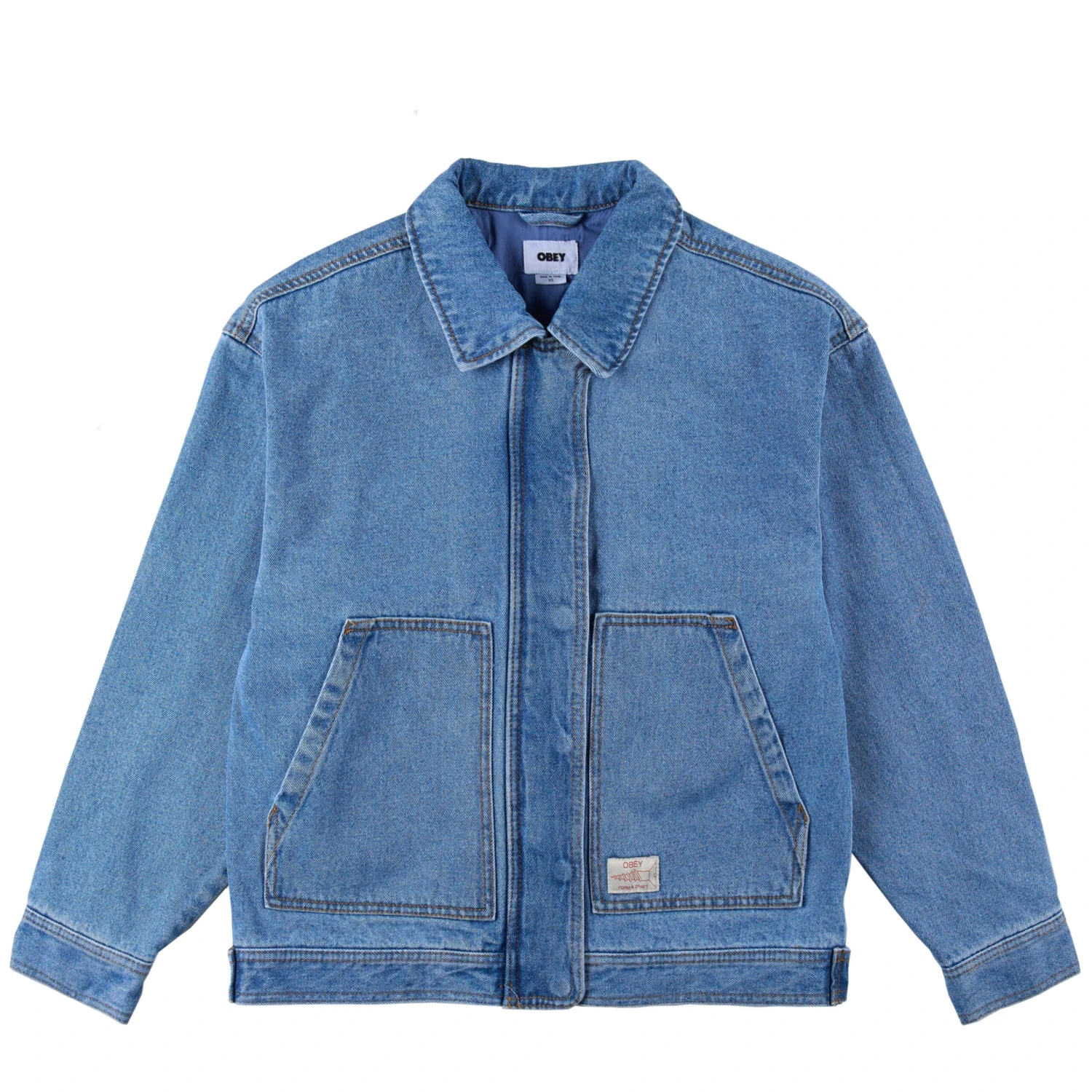 The Obey Women’s Sybil Jacket in Light Indigo is a relaxed-fit denim work jacket crafted from 100% cotton 13.5 oz denim. Featuring a contrast self-collar, hidden snap and zipper closure, adjustable cuffs, and an adjustable tab closure at the back waist, this jacket blends functionality with effortless style. Patch front pockets with logo labels add a signature touch, while the durable construction makes it a versatile layering piece for any wardrobe.