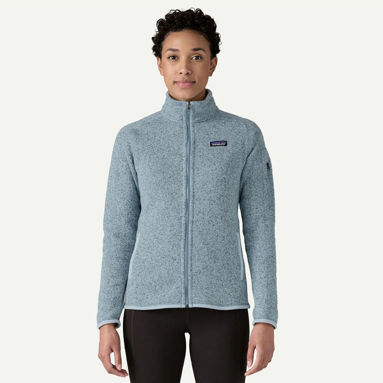The Patagonia Women’s Better Sweater Jacket in Fleck Blue is a warm full-zip jacket made from 100% recycled polyester. It features a sweater-knit aesthetic combined with the easy care of Better Sweater fleece. The jacket is dyed using a low-impact process that significantly reduces the use of dyestuffs, energy, and water compared to conventional dyeing methods. Ethically made in a Fair Trade Certified™ factory.