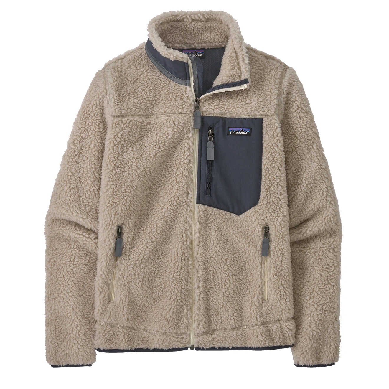 The Patagonia Women’s Classic Retro-X® Jacket in Natural/Smolder Blue is a windproof and warm fleece designed for cool, blustery conditions. It features a 100% polyester (85% recycled) ¼”-pile fleece face bonded to a breathable mesh backer, combining vintage style with modern technical performance.