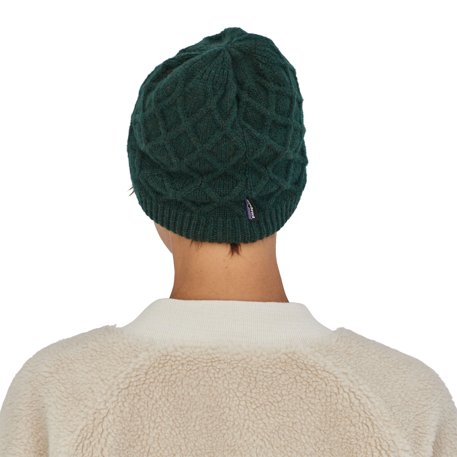 The Patagonia Womens Honeycomb Knit Beanie in Northern Green is a toasty-warm, low-profile beanie made of a recycled wool/recycled nylon blend and lined with a cozy recycled fleece headband. Fair Trade Certified™ sewn.