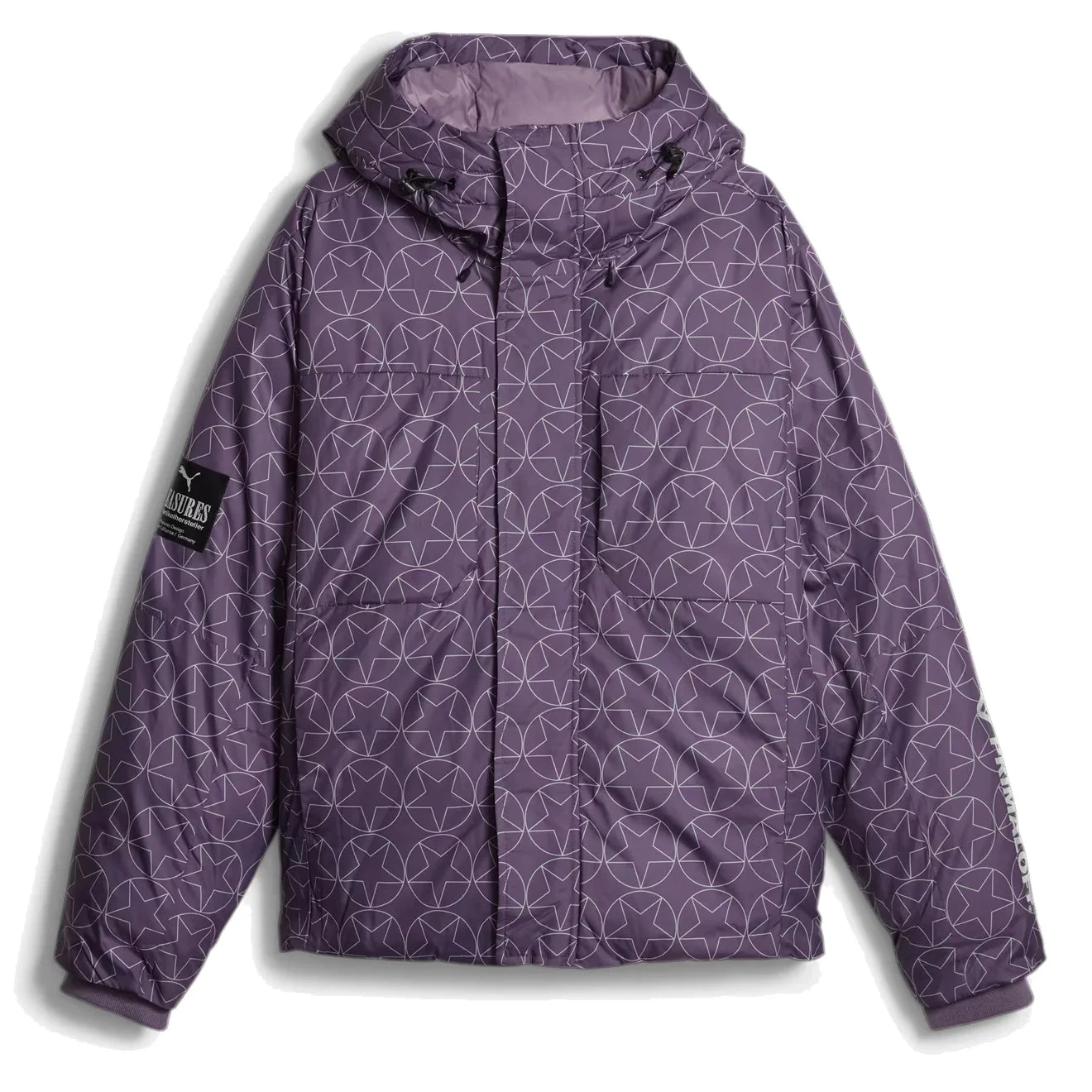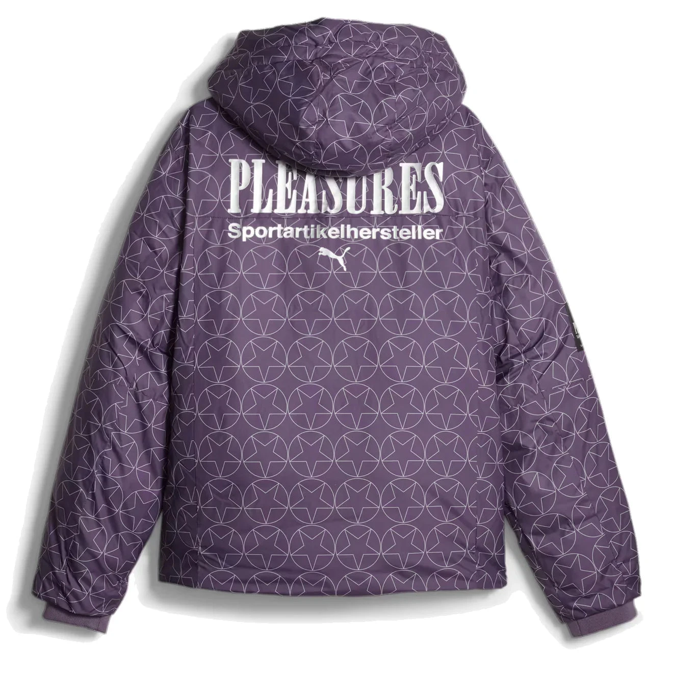 the puma x pleasures puffer jacket in regal purple charcoal boasts a perfect fusion of fashion and warmth. its distinctive design and high-quality materials cater to those who crave urban style with cozy comfort.