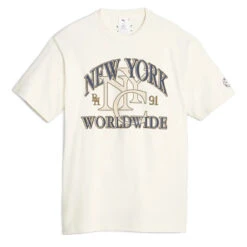 the puma x rhuigi graphic tee in pristine offers a blend of fashion and sportswear. its unique design showcases rhuigi villaseñor’s creativity, making it a stylish and comfortable wardrobe essential.