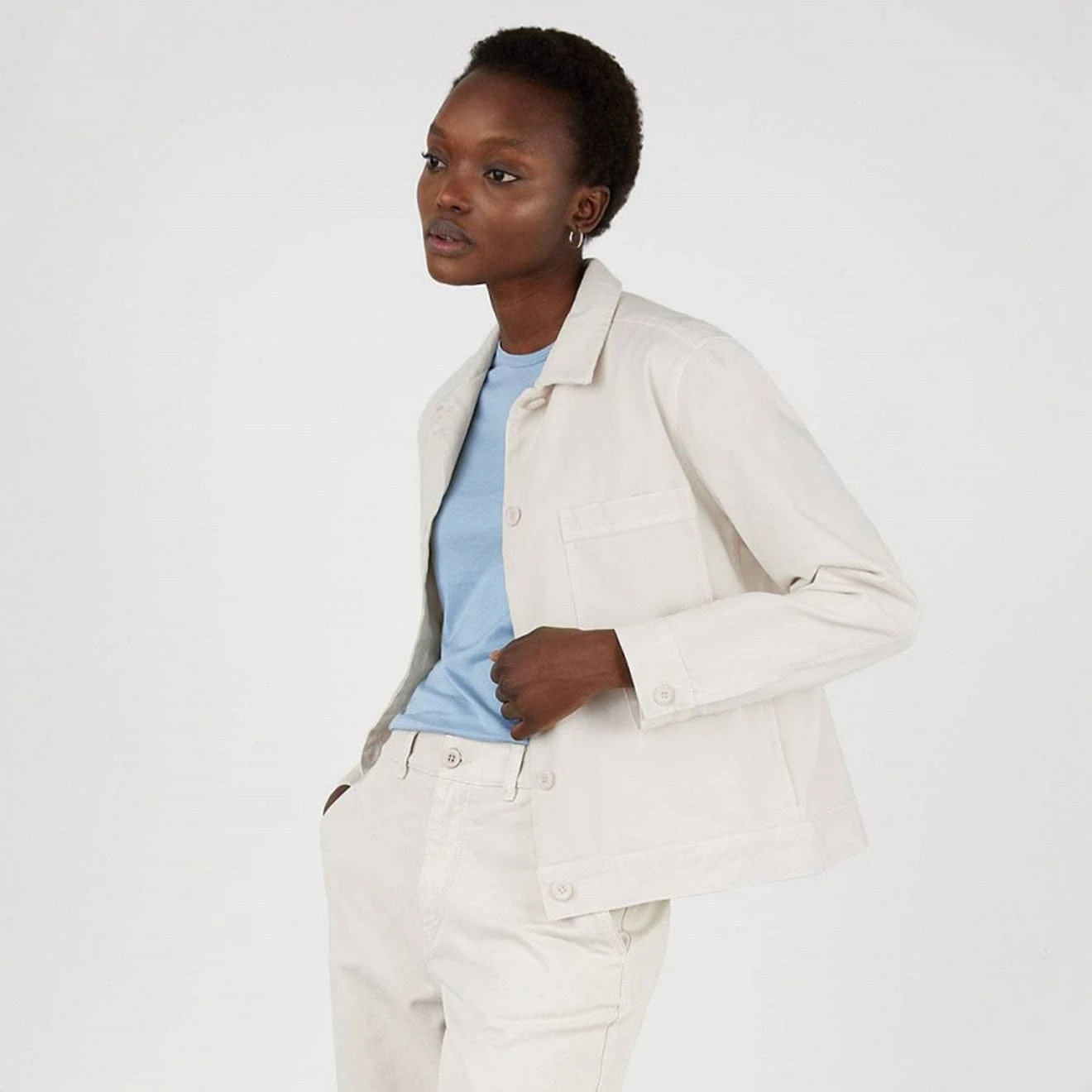 The Sunspel Women’s Chore Jacket is made from French cotton drill cut to a boxy fit. The fabric is garment dyed for a broken in feel and detailed with a neat collar and a summary down placket.