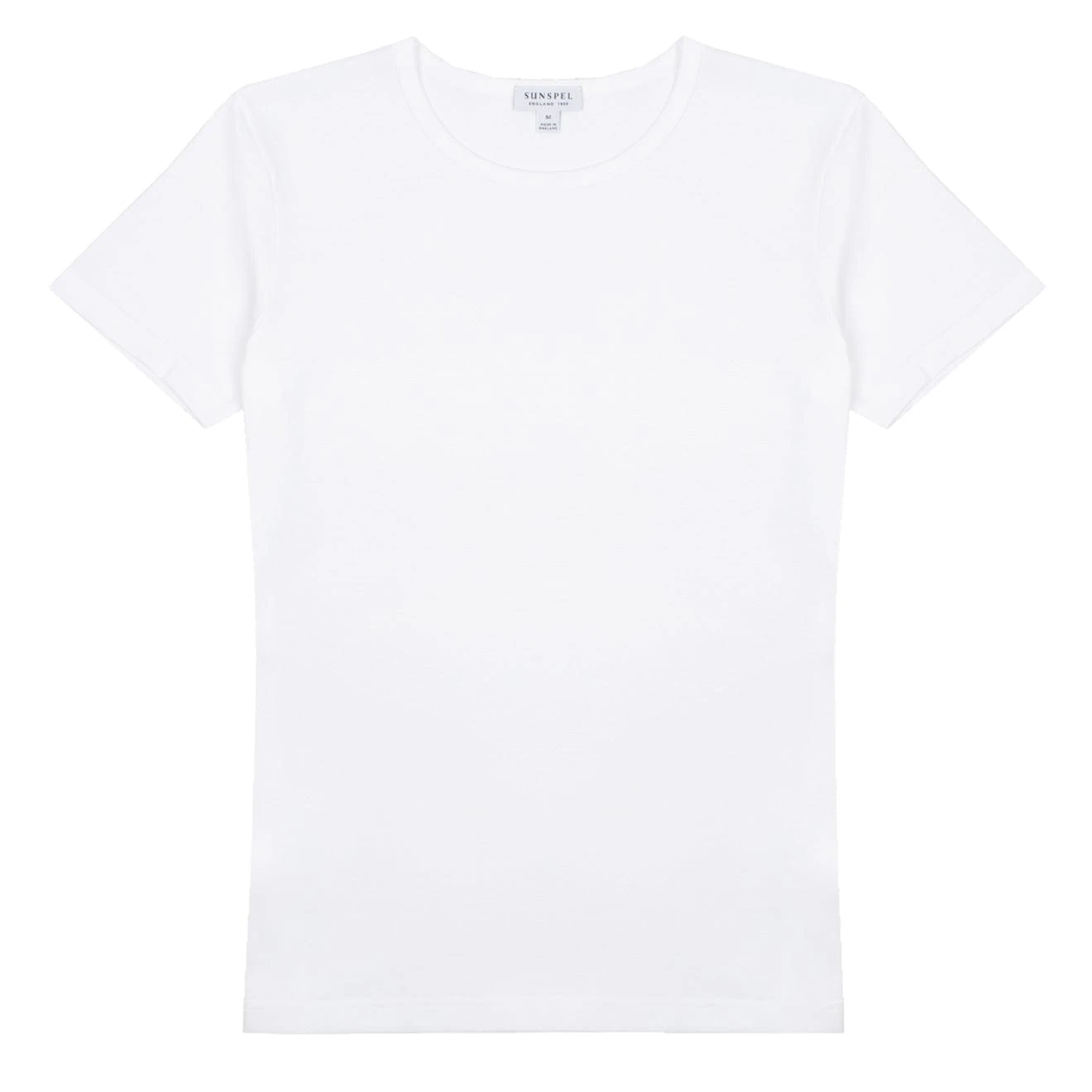 The Sunspel Women’s Classic T-Shirt in White is handcrafted in the Sunspel factory in Long Eaton, England, using the finest extra-long staple Supima cotton, sustainably sourced from California. Designed with a clean, body-skimming fit, it features perfectly proportioned sleeves, a flattering crew neckline, and a cut that sits just above the waist for ease of movement.