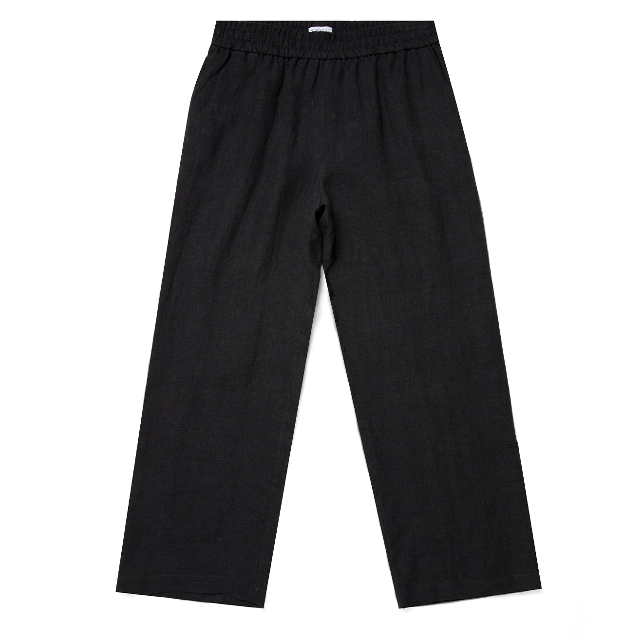 effortlessly chic, the sunspel women’s drawstring wide leg trouser in black redefines comfort and style. with a modern silhouette and luxurious fabric, it’s an essential for those seeking elevated leisurewear.